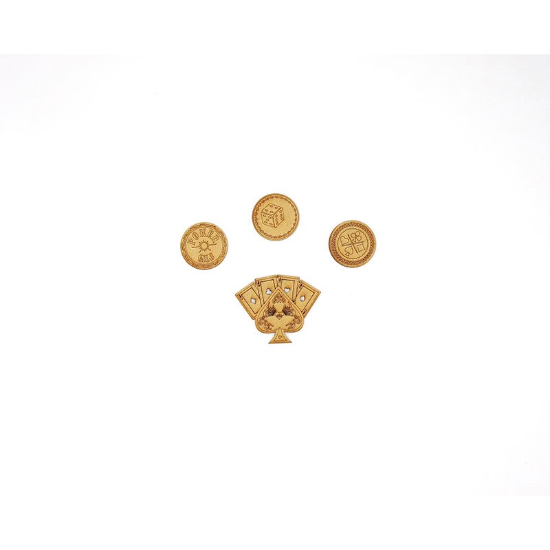 CARTES DE JEUX ET JETONS 4 PIECES EN BOIS. DECORATIONS SCRAPBOOKING