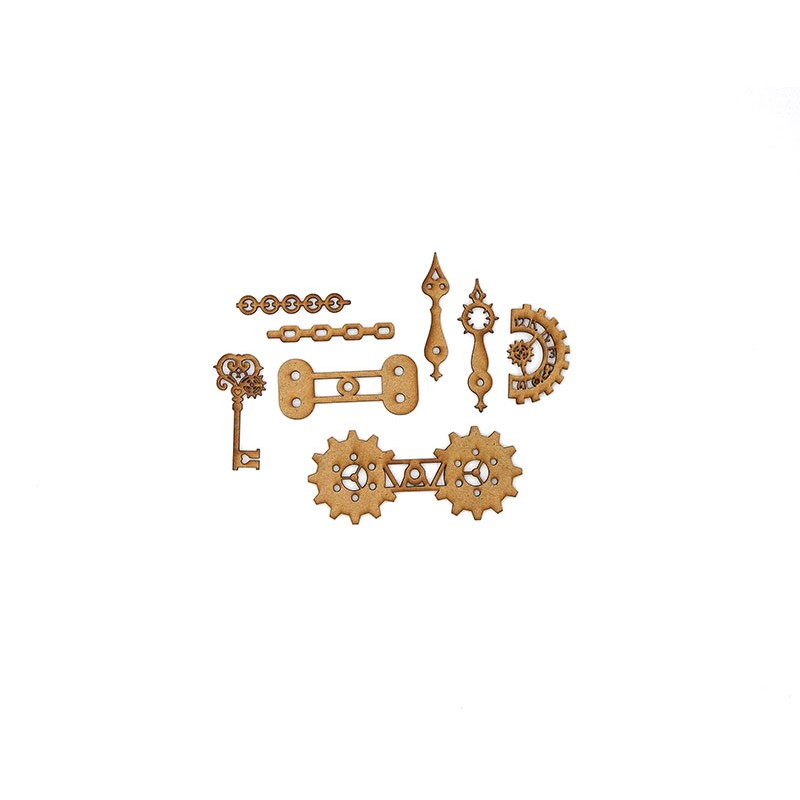 STEAMPUNK SET DEMI CADRAN ENGRENAGE CLE EN BOIS 8 PIECES