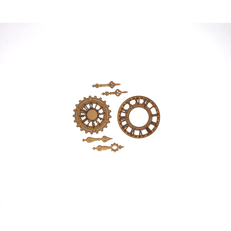 Cadran engrenage et aiguilles découpés au laser. Embellissement scrapbooking...